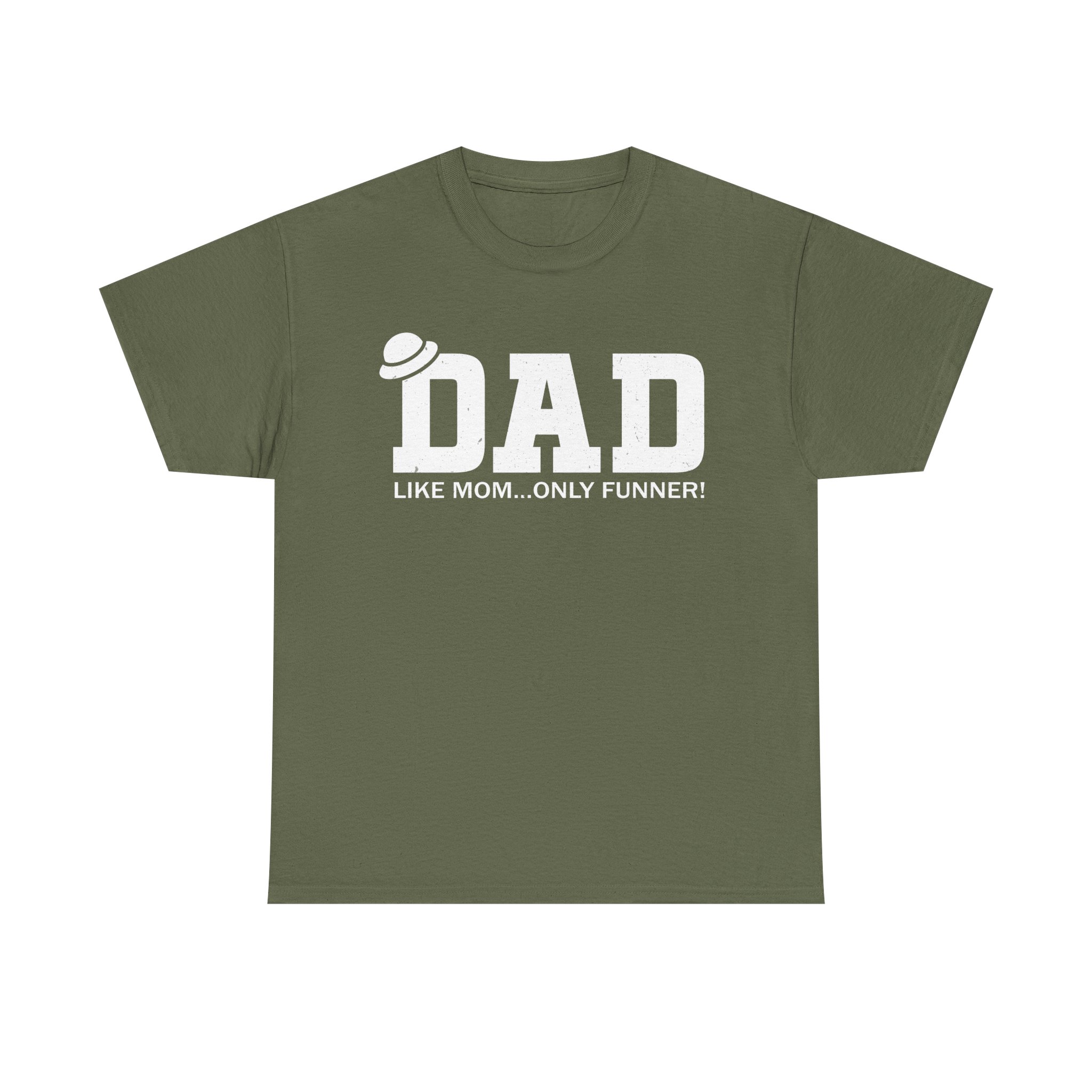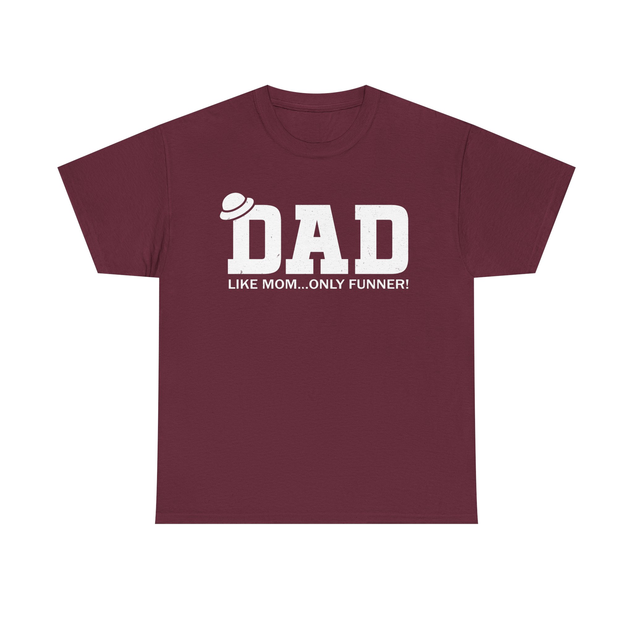 This funny dad t-shirt features the phrase “DAD – Like Mom… Only Funner!” with a playful design. Perfect gift for Father’s Day, birthdays, or any dad who loves humor and family fun.