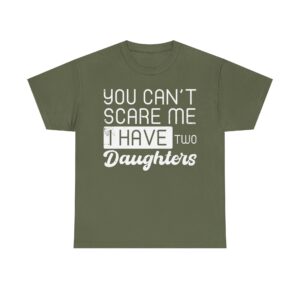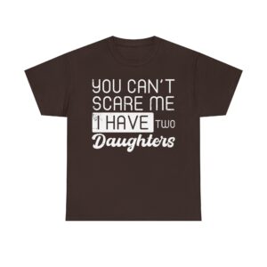 This T-shirt features the funny quote “You Can’t Scare Me, I Have Two Daughters” in a bold, distressed style. It’s a perfect tee for proud dads who love humor and want a comfortable everyday shirt. Great as a gift for fathers with daughters.