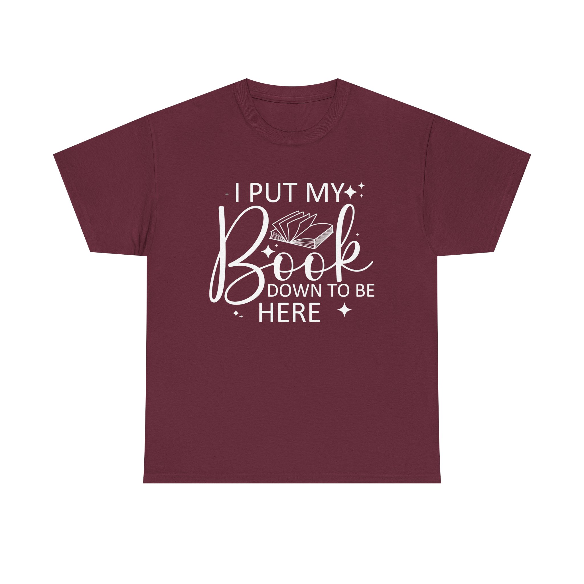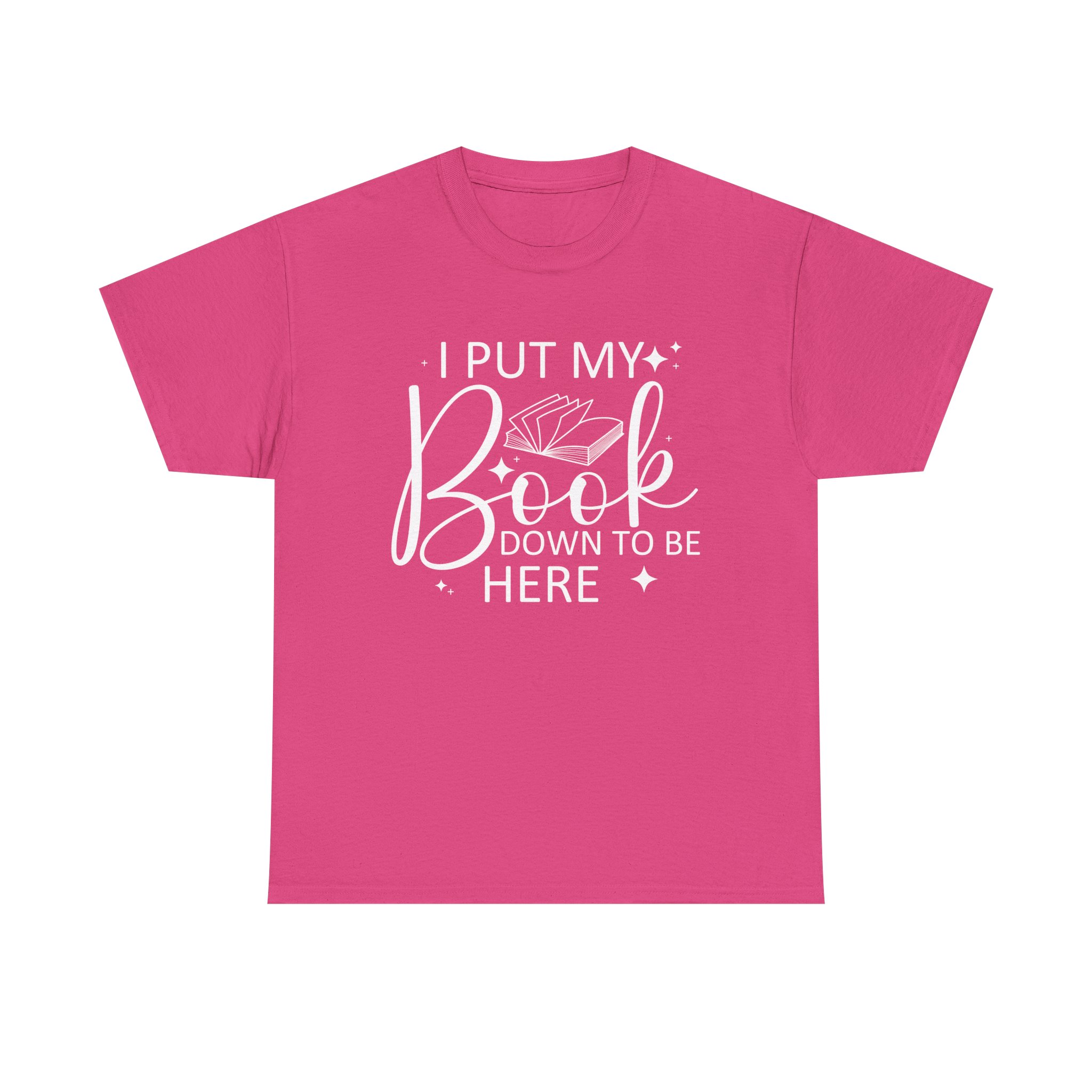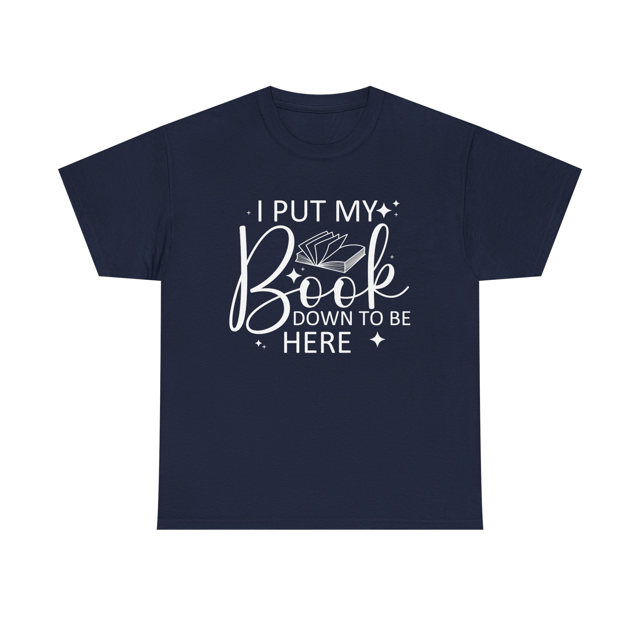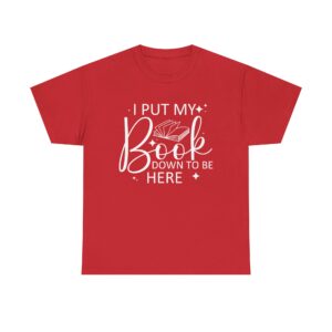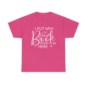Introducing our Unisex Heavy Cotton Tee, This “I Put My Book Down To Be Here” t-shirt is perfect for book lovers and readers who enjoy a touch of humor. Featuring a clean design with an open book graphic, it’s a fun and comfortable way to show your love for reading anywhere you go.