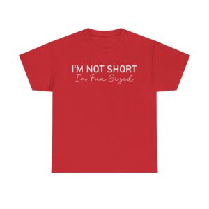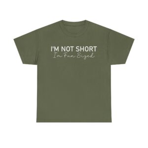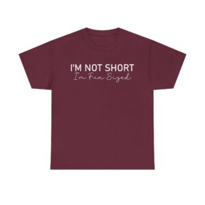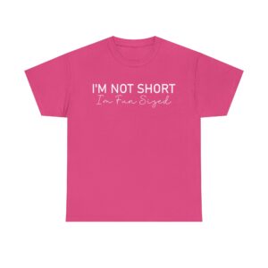 Introducing our Unisex Heavy Cotton Tee, Celebrate your personality with this fun and playful T-shirt featuring the quote: “I’m Not Short I’m Fun Sized.” Perfect for those who embrace their height with confidence and humor. Made from soft, comfortable fabric ideal for everyday wear.