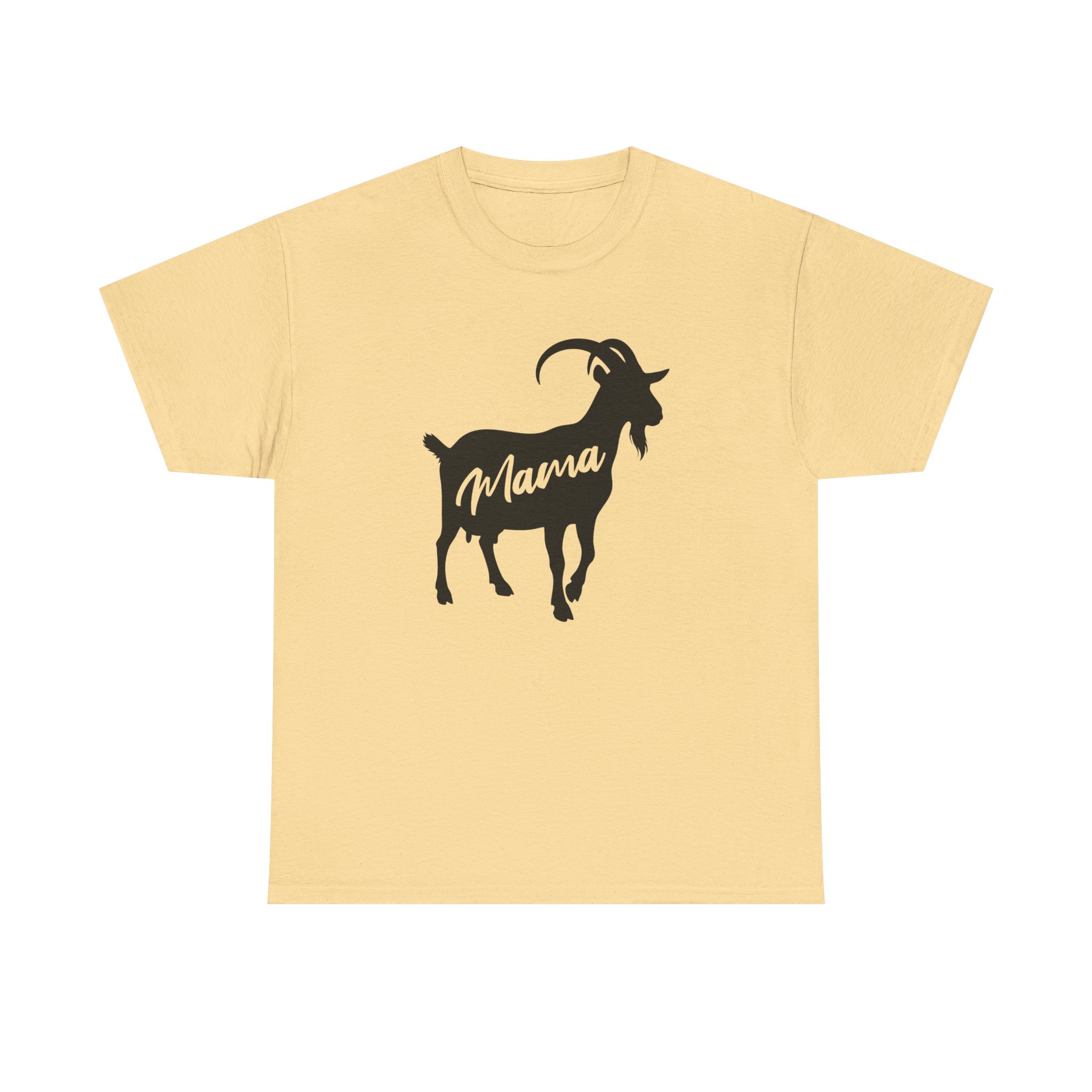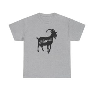 Introducing our Unisex Heavy Cotton Tee, This T-shirt features a black silhouette of a goat with the word “Mama” written inside in a stylish script font. It’s a cute and simple design perfect for goat lovers, farm moms, and anyone who enjoys farm-inspired style. Great for everyday wear or as a thoughtful gift for a mama.
