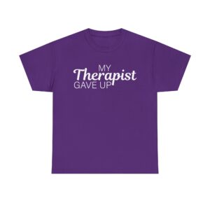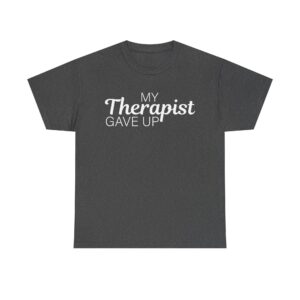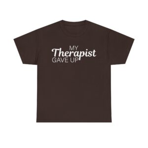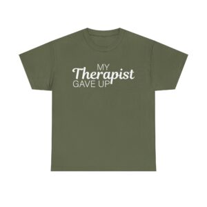 Introducing our Unisex Heavy Cotton Tee, This T-shirt features a funny text design that says “My Therapist Gave Up,” perfect for anyone who loves sarcastic humor. Made from soft, it feels comfortable for everyday wear. It’s a great pick if you want a simple, humorous tee that stands out.