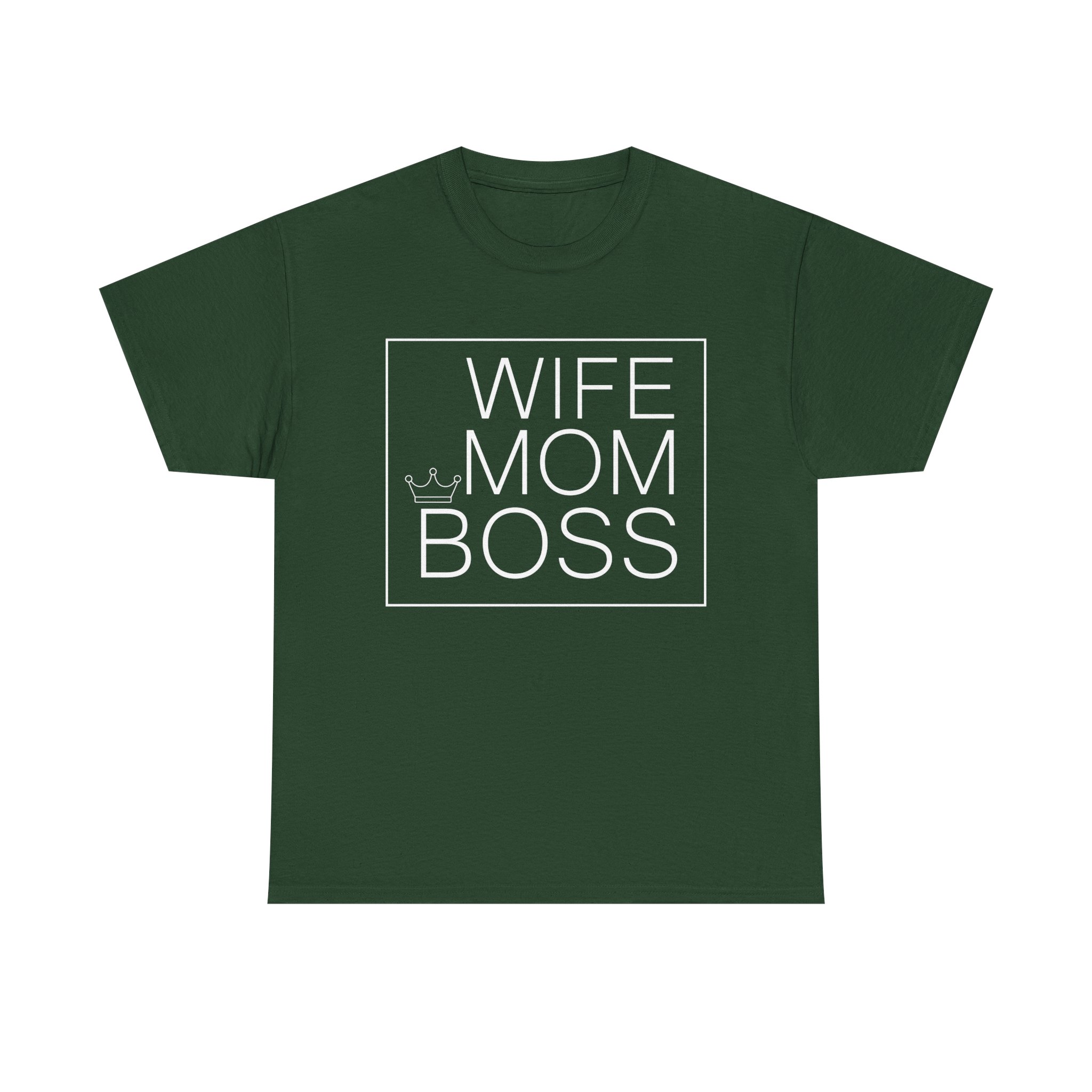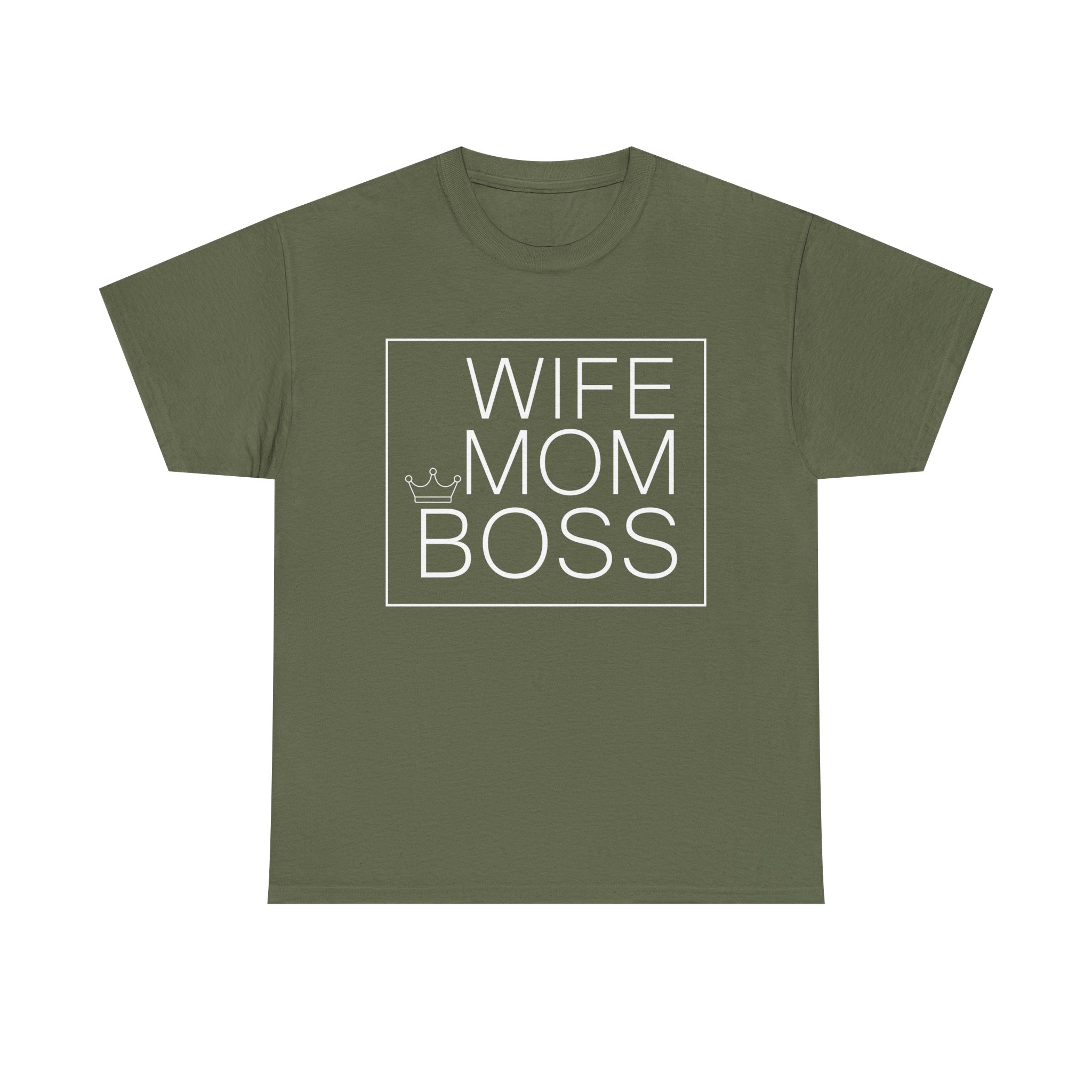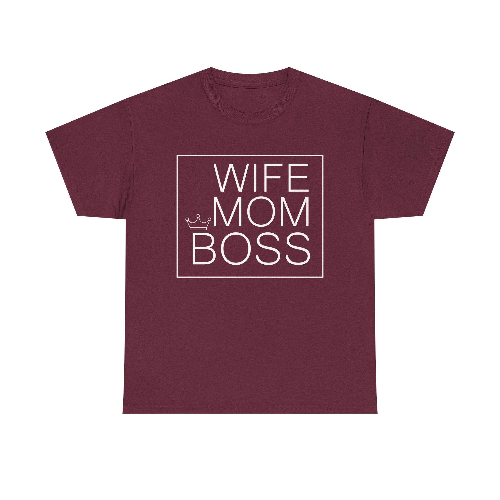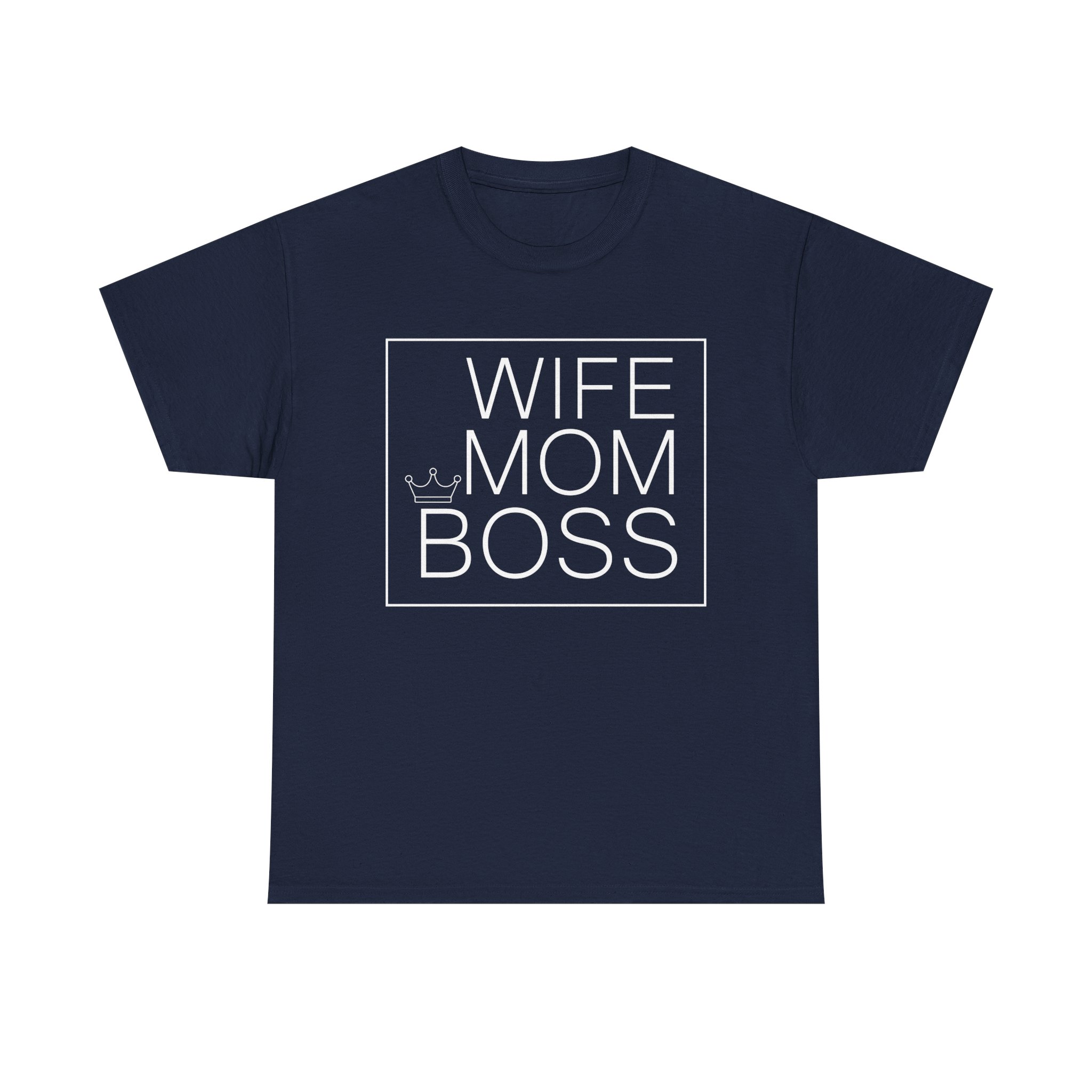 This Wife Mom Boss t-shirt is perfect for strong women who balance being a wife, mom, and leader. Featuring a text design with a crown, it makes a stylish and empowering gift for moms, wives, and boss ladies.